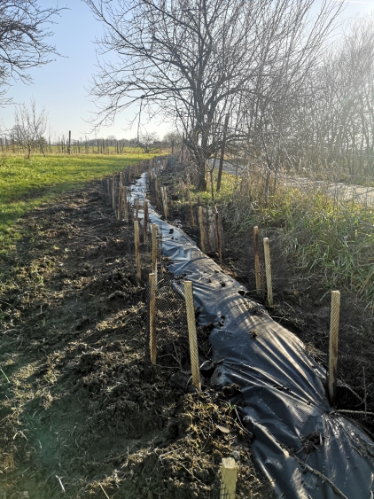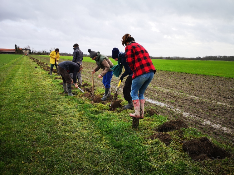 Ces nouvelles haies sont plantées pour les bénéfices agricoles qu'elles apporteront mais également pour créer de nouveaux refuges en faveur de la biodiversité et pourquoi pas accueillir de nouvelles espèces ? Après cinq mares créées en 2018-2019, nous avons donc à nouveau soutenu ce nouveau projet de plantation grâce à la présence d'une dizaine d'adhérents du ReNArd, un bénévole du groupe LPO Argonne et des proches de l'agriculteur.