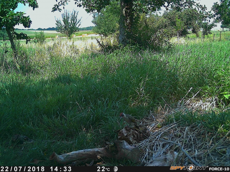 Les premiers pièges ont été relevés ces deux derniers jours. Nous n'avons pas résisté longtemps pour visualiser les cartes SD. Nous avons eu quelques belles surprises comme ce Renard roux qui a pris l'habitude de passer devant le piège assez régulièrement ou encore cet Hérisson en pleine chasse sur l'exploitation maraichère. Les oiseaux sont également au rendez-vous avec ce superbe Pic Vert ! Ce petit aperçu nous motive encore plus pour découvrir la suite.